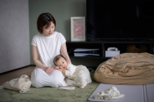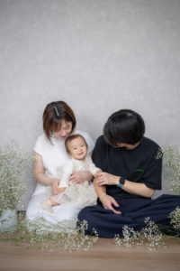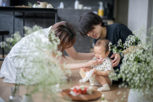 ご自宅での撮影だからこそ、お子様のソロショットはもちろん、パパママとのファミリーフォトも存分に。