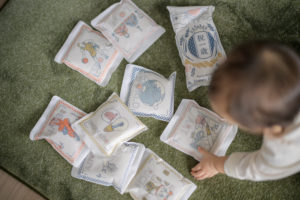 選び取りカード(選び取り米)を興味津々に見つめる姿も、選んだカードを元気いっぱい見せてくれる姿も、お子様らしさを大切に撮影しています。