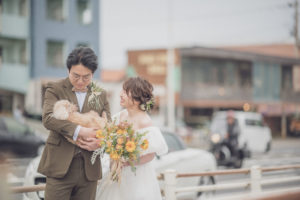 お二人の大切な家族 リキくんも一緒にファミリーフォト撮影。