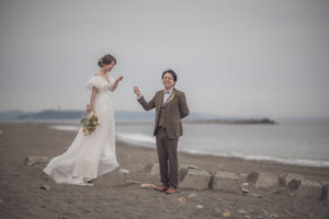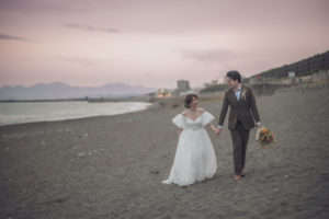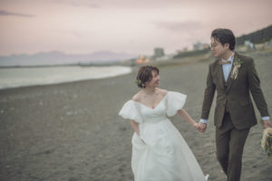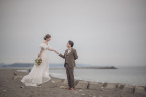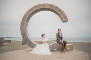 フォトウェディングの舞台は、お二人の思い出の場所であり、サザンオールスターズの聖地としても有名な「茅ヶ崎海岸」