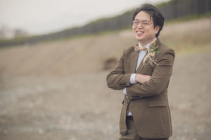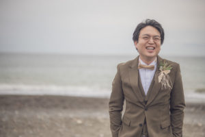 普段なかなか笑わないという新郎さんが笑いかける先には、いつも最愛の新婦さんと愛犬のリキくんがいる。