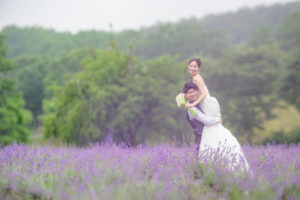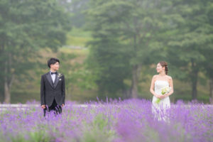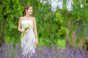 ラベンダー畑でのフォトウェディングにずっと憧れていたという新婦さん。