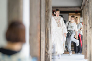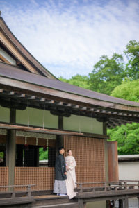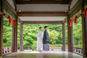 まるでタイムスリップしたかのような境内では、お二人のソロショットが映えますね。