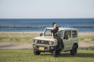 まずは、広大なロケーションをバックに、新婦さんの愛車ジムニーと。
