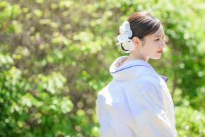 胡蝶蘭が印象的な洋髪とは変わって、日本の古き佳き美しさを感じるワンシーンに。