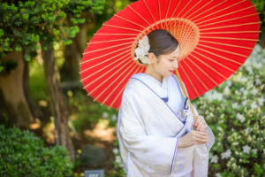 この日は特に新緑が美しく、自然のグリーンと気品ある白無垢のコントラストにスタッフ一同うっとりでした。