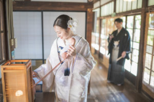 新婦さんの白無垢は、実は一目惚れで選んだもの。