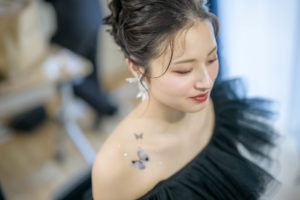 蝶モチーフのボディシールをアクセントにした、ワンランク上の大人なスタイリングがとってもお似合いでした。
