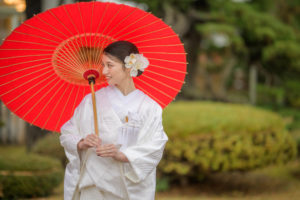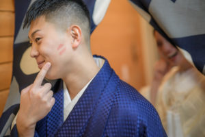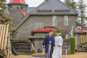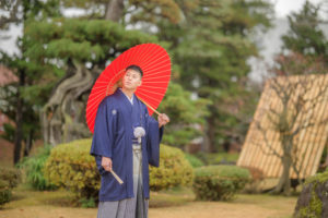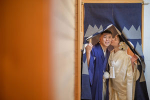 スタイリングも和装にチェンジして、気品ある白無垢と紺色の紋付袴で撮影していきます。