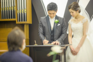 セレモニー後には、チャペル内で少しフォトタイムを。