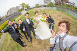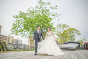 セレモニー後は、朗らかなお二人にぴったりなロケーションへ。